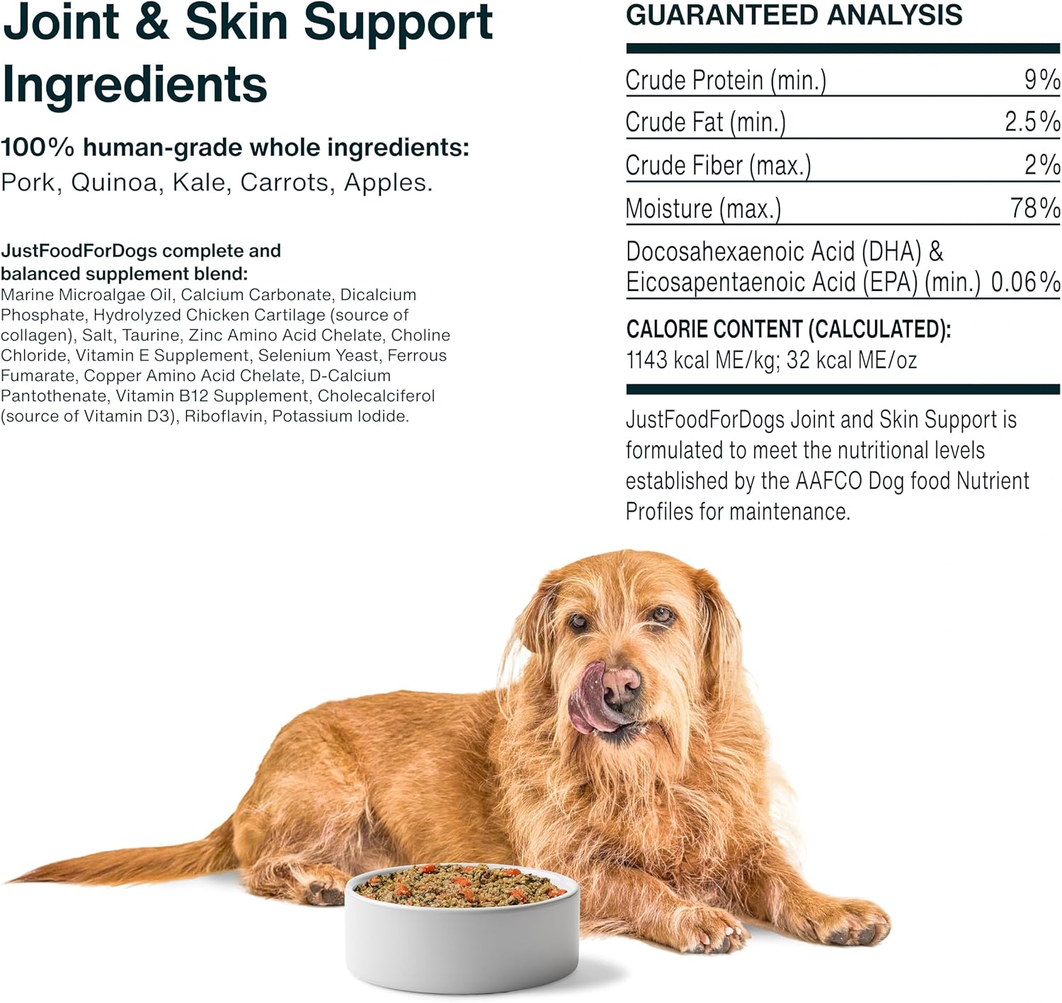 Give your dog wholesome, fresh nutrition with JustFoodForDogs Frozen Fresh Dog Food – Joint & Skin Support, crafted with real, human-grade ingredients to nourish dogs from the inside out. This clean, gently cooked recipe is designed for dogs with sensitive skin and coats, or those who benefit from added joint-support ingredients in their daily meals.